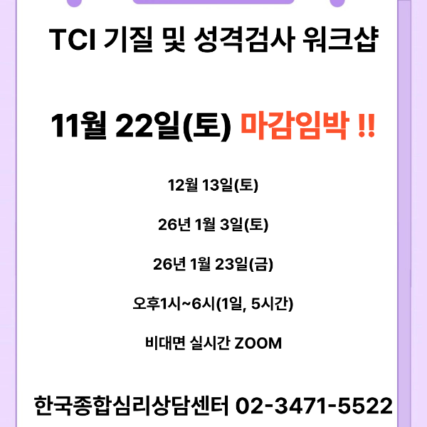 TCI 기질 및 성격검사 워크샵을 수강하시면