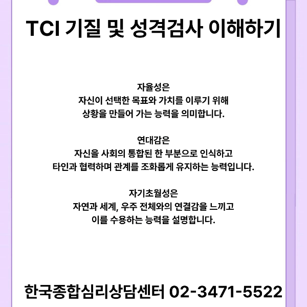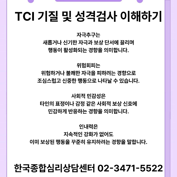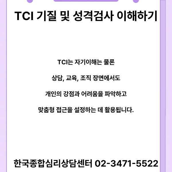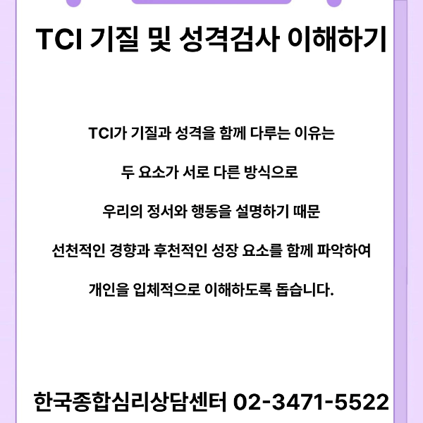 따라서 TCI는 선천적인 경향과 후천적인 성장 요소를 함께 파악하여