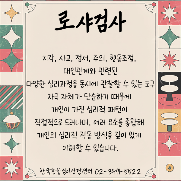 이처럼 로샤검사는 지각, 사고, 정서, 주의, 행동조절, 대인관계와 같은